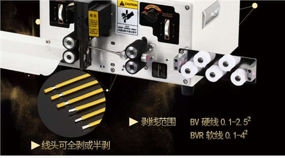 剝線機進線輪壓力調(diào)節(jié)旋鈕和剝線機出線輪壓力調(diào)節(jié)旋鈕也是屬于剝線機的基本配件,這是需要根據(jù)線材的線皮強度來確定,就相當于剝線皮的難易,難的時候壓力會增大,容易的時候壓力就會減小了。剝線機的任務(wù)不僅是電線等外包裹的塑料包皮與金屬芯剝離,還會對線材切斷?;九浼斨械牡都芸偝删褪窃趧兙€機中負責線材的切斷,剝頭和剝尾的。